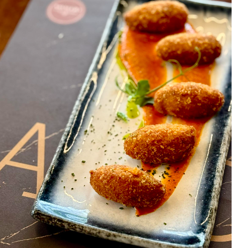 σε σάλτσα από bisque γαρίδας με κρόκο Κοζάνης & crumble μυρωδικών