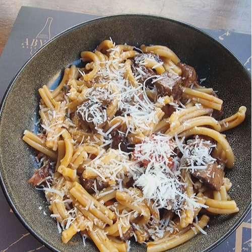 σε σάλτσα μαστίχας Χίου, με φρέσκα μανιτάρια Portobello & Πεκορίνο Αμφιλοχίας
