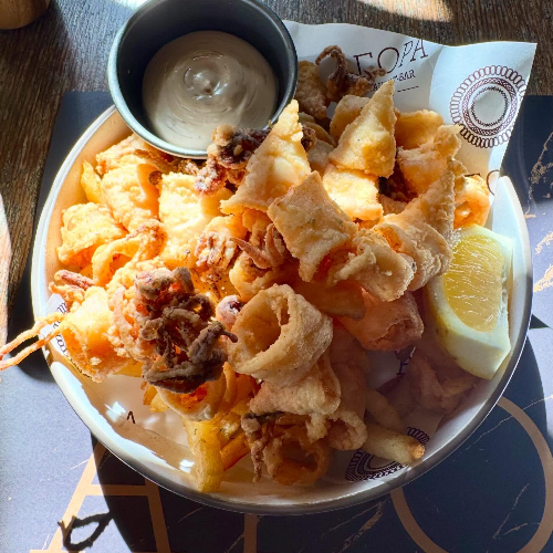 με πούδρα από αυγοτάραχο Μεσολογγίου & ψητά πιττάκια